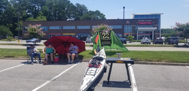 My girlfriend and I started setting up while I sent my sister for shade and chairs.