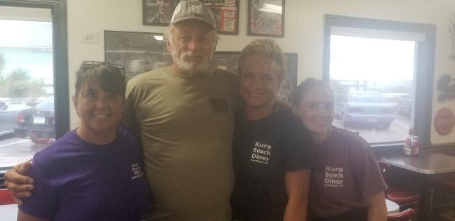 Went back to Kure Beach Diner for dinner. More friendly wait staff tonight. Left to right are, Melissa, Andrea, Jamie. Dinner got paid for by a customer I met earlier on the pier.