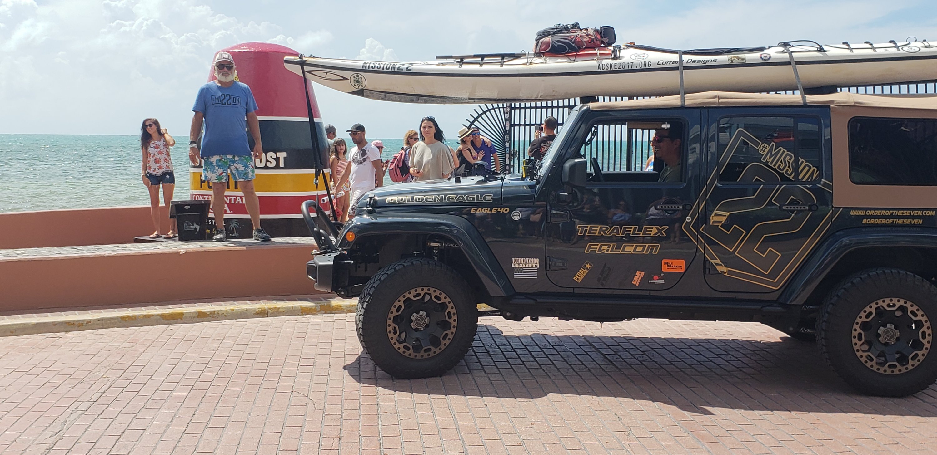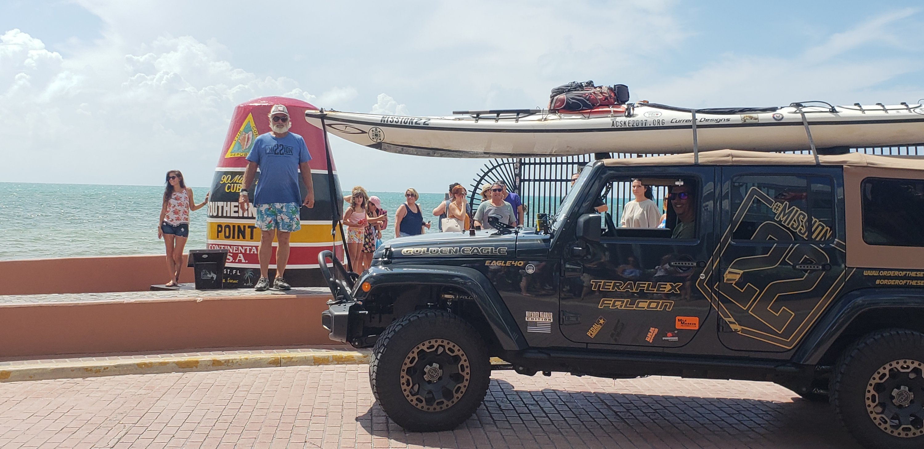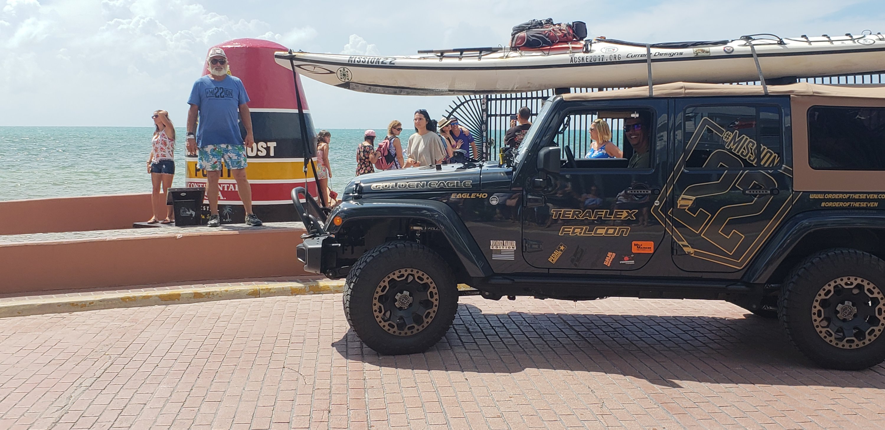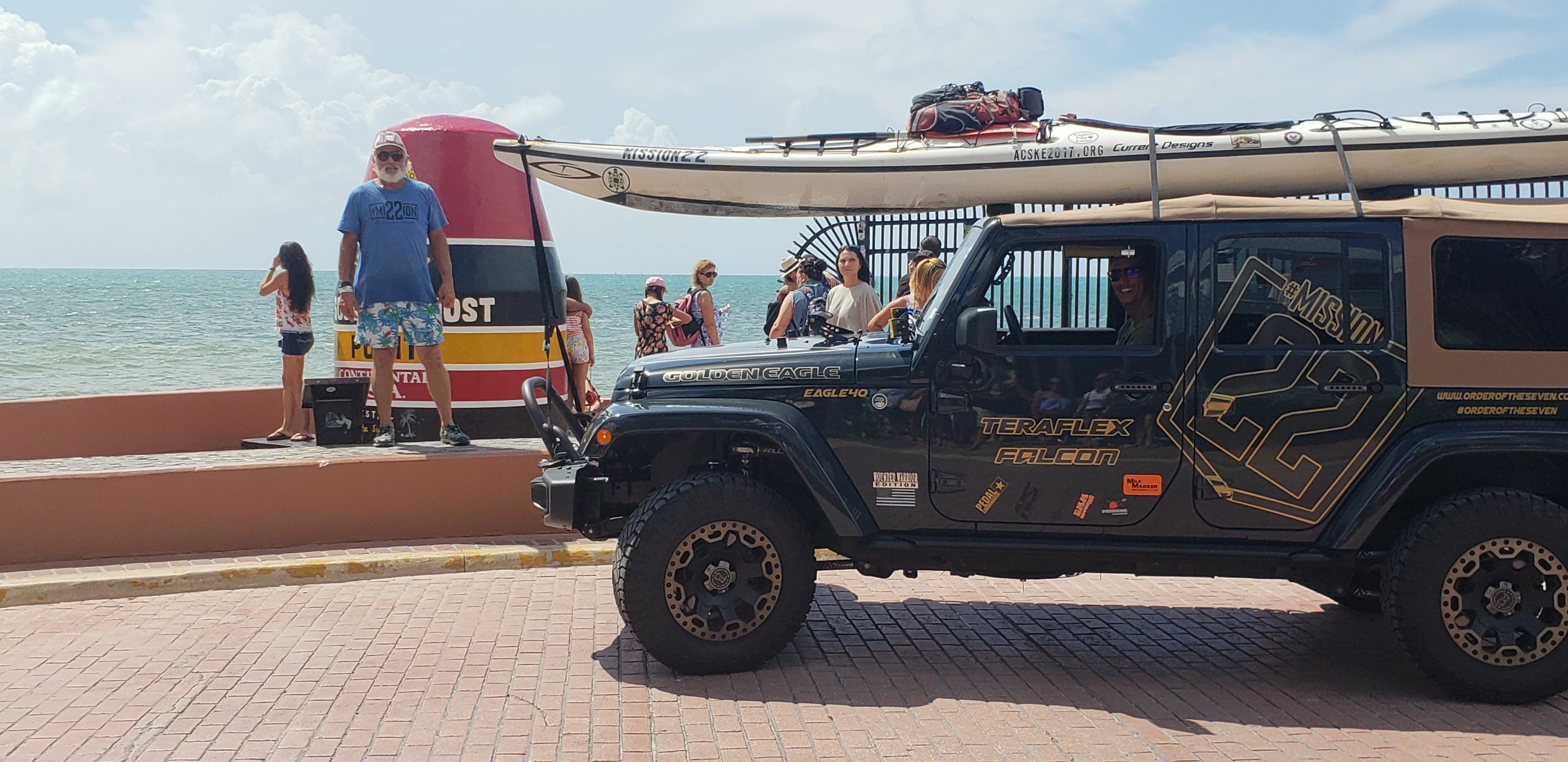 When we got there there was a long line so we came up with a plan to drive around the block park in front of the market and get a pic of me, yak, jeep and marker. I gave CC my phone camera ready and we jumped out. She starts screaming that I just completed 5000 mile paddle from Maine to Key West and we needed my pic in front of marker. People cheered and moved out of the way. It was great. We jumped back in the jeep and went up the road to join Soledad and David.